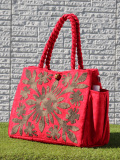 22. ハワイアンキルト レッスンバッグ ハイビスカス EDブラウン オン レッド