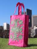 7. ハワイアンキルトA4バッグ ハイビスカス モスグリーン オン ショッキングピンク