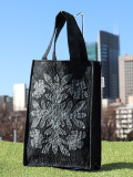 13. ハワイアンキルトA4バッグ ハイビスカス ダークグレイ オン ブラック
