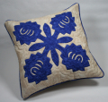 落ち着いた色合いのどの部屋にも飾れるオールマイティなハワイアンキルトクッションカバーの完成品です。