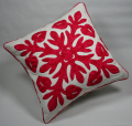 ハート型の真っ赤なかわいい包葉をもつアンスリウムはハワイアンキルトの定番であり、誰からも愛されているモチーフです。この赤い部分が花と思われている方も多いようですが、実は中心の黄色い棒状の中に数百もの花が存在しています。