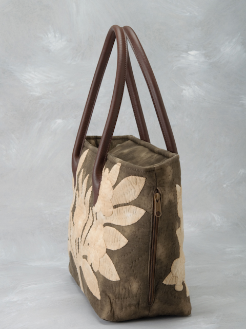 小ぶりのレジャーバッグ ハイビスカス ベージュ オン Eダークブラウン