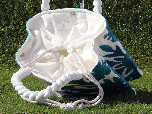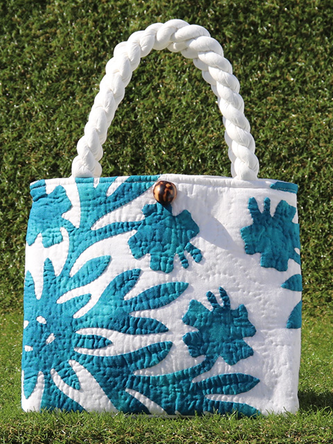 166. ハワインキルトセカンドバッグ スランティングハイビスカス ダークマリンブルー オン オフホワイト