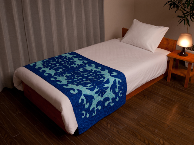 ハワイインキルトスローケット タートルドルフィン Sダークブルー オン パステルブルー